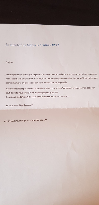 L'annonce je l'ai faite cet aprem (je pouvais plus me retenir) quand il revenu du travail. En fait j'ai mis une enveloppe dans la boîte au lettre avec son nom et prénom. Avec un courrier que je vous post. Et après je lui ai dis poisson d'avril(il voulait juste me taper). Comme dis il est sur la retenue comme moi mais déjà rassurer par rapport au taux. Ya plus qu'à rester optimiste et patienter.