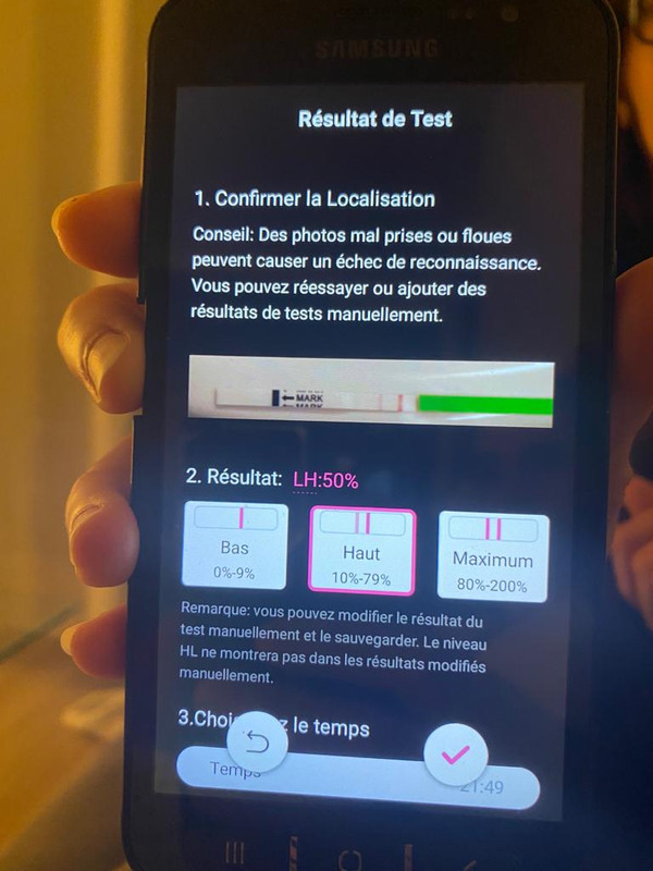 Puis après une sieste avant diner, je refais un test à 21h30 et il est à 50% ( femometer).